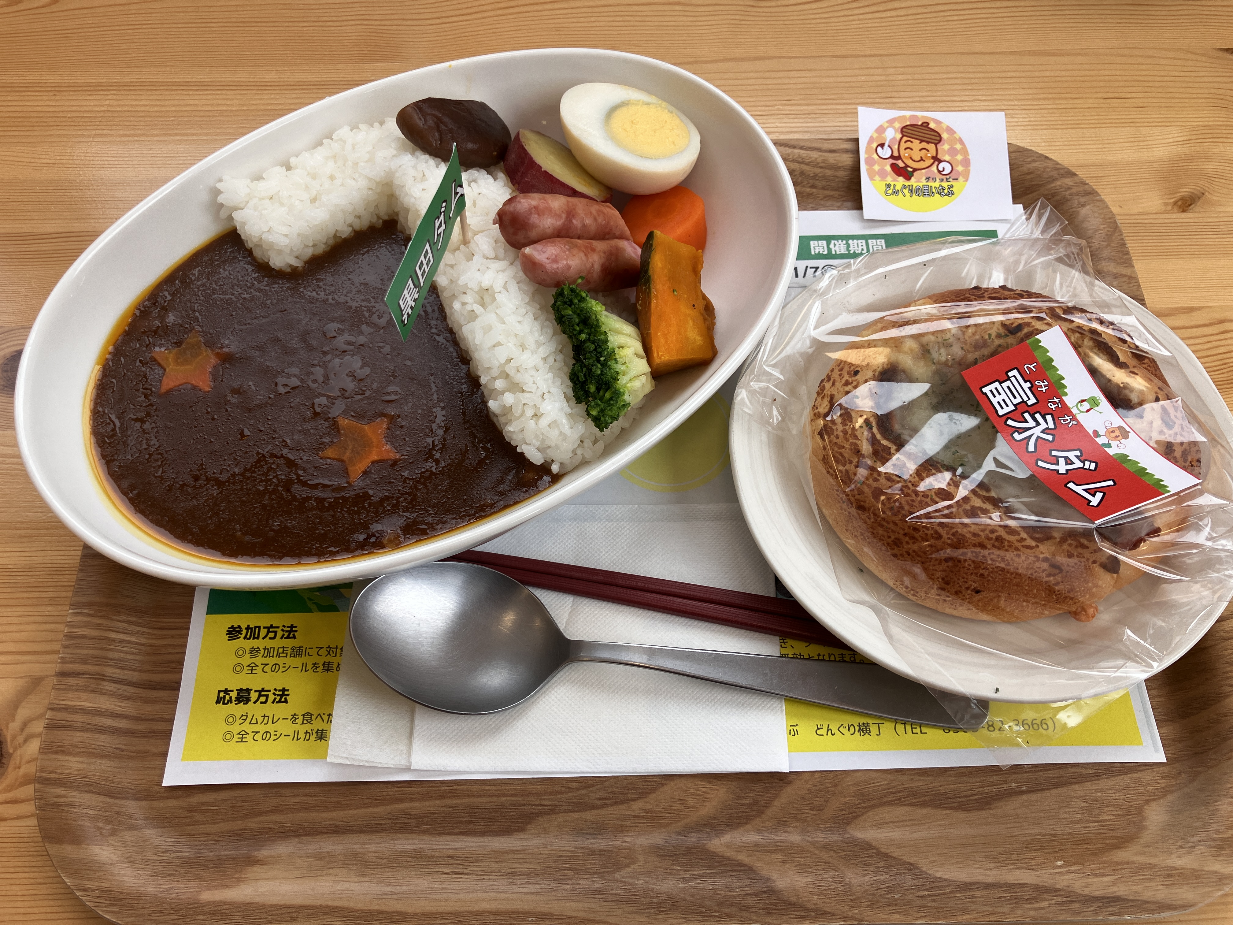 カレー皿が凝っていて、中央下部から放流する仕組みになっているのですが、堤体が皿に固定されているため、洪水吐付近がスプーンが入りづらくて少々食べにくかったです。